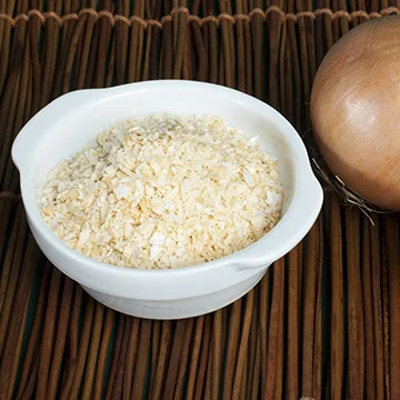 Onion powder is made by grinding dehydrated onion into soft powder. It is less pungent than the fresh onion. It can be used in soups, stews, sauces and marinara; and can be blended in bread, pastas and even hamburgers.