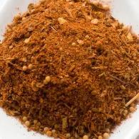A delicious organic blend of: paprika powder, yellow mustard seed, rosemary, marjoram, thyme, garlic granules, onion granules, fine grated black pepper, crushed chili, and basil